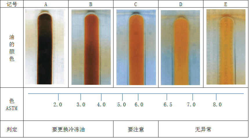 冷凍油的劣化和顏色目視基準 |