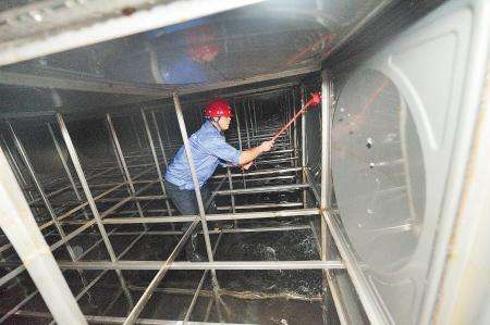 清洗水箱必須二人以上方可操作,頂上要有一名監護人員,負責向水箱內送新風,防止清洗人員余氯中毒 物業轄區生活水箱清洗操作規程 一.工作內容: 根據《泉州市飲用水二次供水衛生管理辦法》,每半年對物業水箱、蓄水池清洗一次,使水箱出水水質達到國家衛生防疫要求,步驟如下: 二.工作要求: 1.作業前 (1)操作人員必須具有衛生防疫部門核發的體檢合格證。 (2)檢查相關閥門是否處于清洗工作要求的狀態。 (3)水箱清洗應盡量避開用水高峰,以不影響物業內用戶正常辦公為前提,并應提前24小時通知物業內用戶。 (4)檢查工作器具、清洗潔具、臨時水源、通風設備是否到位,并打開水箱進水蓋。 2.作業中 (1)開啟放水閥門,放水。 (2)清洗人員進入水箱底部,用百潔布等專用工具和水龍頭對水箱四壁和底部進行清洗和沖刷,然后用符合《生活飲用水衛生標準》的消毒液,對箱壁表面進行噴霧、涂刷。 (3)清洗水箱必須二人以上方可操作,頂上要有一名監護人員,負責向水箱內送新風,防止清洗人員余氯中毒。 3.作業后 (1)清洗結束后,關閉清洗水箱排污閥,打開水箱進水閥開始蓄水。 (2)對水箱加蓋、加鎖,收好清潔工具,整理場地。 (3)對水箱出水取樣,送市防疫站化驗。 (4)對水箱清洗過程認真記錄,并建立水箱檔案,保存成都市衛生防疫部門的水質化驗報告。 二次供水、生活用水水箱水池清洗熱線:0595-22608118 |
