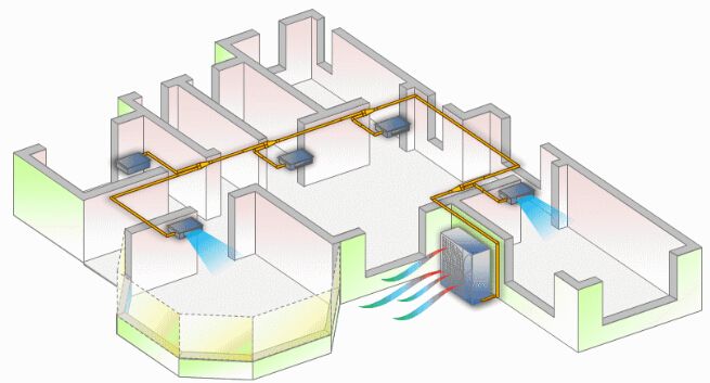 1、滋生細(xì)菌,傳染疾病:由于風(fēng)道通過出風(fēng)口、回風(fēng)口與室內(nèi)形成相對(duì)封閉空間,風(fēng)道內(nèi)的灰塵(一般肉眼看不見)及病菌會(huì)隨著空調(diào)風(fēng)吹到房間各個(gè)角落,逐漸變成室內(nèi)空氣的污染源;同時(shí)某一個(gè)房間的病菌也容易隨著空調(diào)循環(huán)風(fēng)吹到其它房間形成交叉感染。如“非典”期間國家衛(wèi)生部就曾命令停開室內(nèi)所有無新風(fēng)的中央空調(diào),防止疫情傳播。